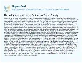 The Influence of Japanese Culture on Global Society. (2024, Dec 27). Retrieved from https://hub.papersowl.com/examples/the-influence-of-japanese-culture-on-global-society/