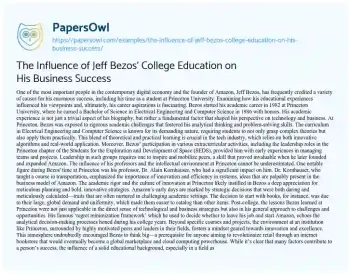 The Influence of Jeff Bezos’ College Education on His Business Success. (2024, May 12). Retrieved from https://hub.papersowl.com/examples/the-influence-of-jeff-bezos-college-education-on-his-business-success/
