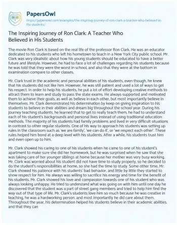 The Inspiring Journey of Ron Clark: A Teacher Who Believed in His Students. (2023, Feb 06). Retrieved from https://hub.papersowl.com/examples/the-inspiring-journey-of-ron-clark-a-teacher-who-believed-in-his-students/