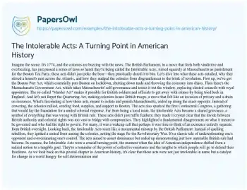 The Intolerable Acts: A Turning Point in American History. (2024, Mar 01). Retrieved from https://hub.papersowl.com/examples/the-intolerable-acts-a-turning-point-in-american-history/
