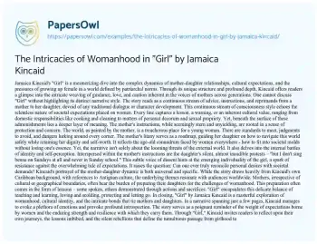 The Intricacies of Womanhood in "Girl" by Jamaica Kincaid. (2023, Oct 16). Retrieved from https://hub.papersowl.com/examples/the-intricacies-of-womanhood-in-girl-by-jamaica-kincaid/