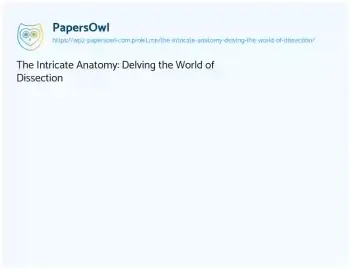 The Intricate Anatomy: Delving the World of Dissection. (2024, Mar 12). Retrieved from https://hub.papersowl.com/examples/the-intricate-anatomy-delving-the-world-of-dissection/
