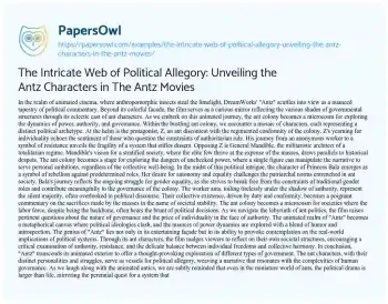 The Intricate Web of Political Allegory: Unveiling the Antz Characters in The Antz Movies. (2023, Dec 01). Retrieved from https://hub.papersowl.com/examples/the-intricate-web-of-political-allegory-unveiling-the-antz-characters-in-the-antz-movies/