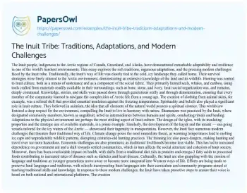 The Inuit Tribe: Traditions, Adaptations, and Modern Challenges. (2024, May 21). Retrieved from https://hub.papersowl.com/examples/the-inuit-tribe-traditions-adaptations-and-modern-challenges/