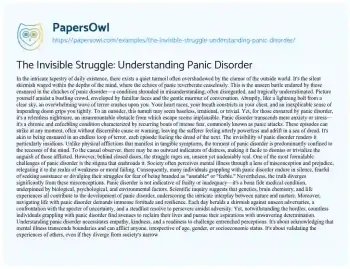The Invisible Struggle: Understanding Panic Disorder. (2024, Mar 18). Retrieved from https://hub.papersowl.com/examples/the-invisible-struggle-understanding-panic-disorder/