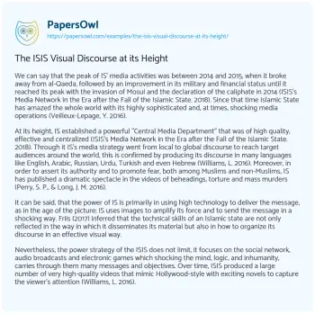 The ISIS Visual Discourse at its Height. (2019, May 05). Retrieved from https://hub.papersowl.com/examples/the-isis-visual-discourse-at-its-height/