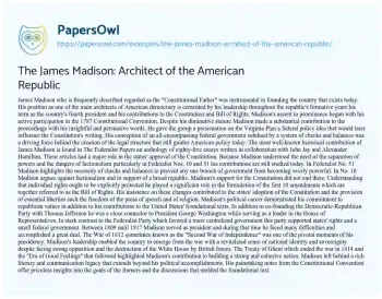 The James Madison: Architect of the American Republic. (2024, Jul 06). Retrieved from https://hub.papersowl.com/examples/the-james-madison-architect-of-the-american-republic/