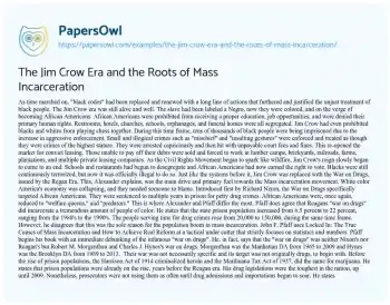 The Jim Crow Era and the Roots of Mass Incarceration. (2019, Oct 26). Retrieved from https://hub.papersowl.com/examples/the-jim-crow-era-and-the-roots-of-mass-incarceration/