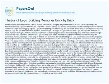 The Joy of Lego: Building Memories Brick by Brick. (2025, Dec 11). Retrieved from https://hub.papersowl.com/examples/the-joy-of-lego-building-memories-brick-by-brick/