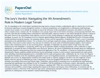 The Jury's Verdict: Navigating the 7th Amendment's Role in Modern Legal Terrain. (2024, May 12). Retrieved from https://hub.papersowl.com/examples/the-jurys-verdict-navigating-the-7th-amendments-role-in-modern-legal-terrain/