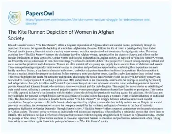 Khaled Hosseini’s novel, *The Kite Runner*, offers a poignant exploration of Afghan culture and societal norms, particularly through its depiction of women. Set against the backdrop of a turbulent Afghanistan, the novel follows the life of Amir, a privileged boy from Kabul. Through Amir's journey, Hosseini reveals a society where women are often marginalized and constrained by rigid gender roles. This essay examines how *The Kite Runner* portrays the challenges faced by Afghan women, epitomized by the character Soraya, and reflects on the broader implications of these depictions.