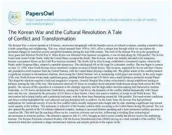 The Korean War and the Cultural Revolution: A Tale of Conflict and Transformation. (2024, Jun 17). Retrieved from https://hub.papersowl.com/examples/the-korean-war-and-the-cultural-revolution-a-tale-of-conflict-and-transformation/