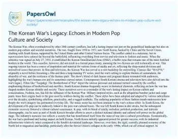 The Korean War's Legacy: Echoes in Modern Pop Culture and Society. (2024, Jun 17). Retrieved from https://hub.papersowl.com/examples/the-korean-wars-legacy-echoes-in-modern-pop-culture-and-society/
