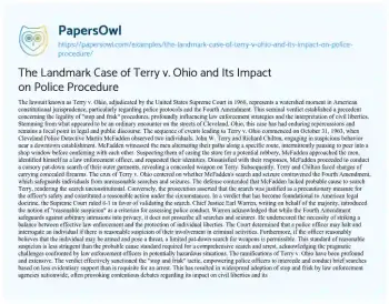 The Landmark Case of Terry v. Ohio and Its Impact on Police Procedure. (2024, Jun 01). Retrieved from https://hub.papersowl.com/examples/the-landmark-case-of-terry-v-ohio-and-its-impact-on-police-procedure/