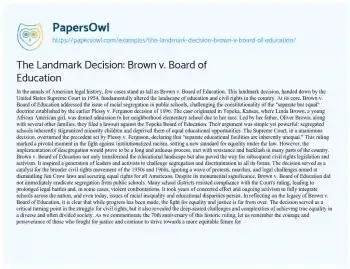 The Landmark Decision: Brown v. Board of Education. (2024, Mar 02). Retrieved from https://hub.papersowl.com/examples/the-landmark-decision-brown-v-board-of-education/