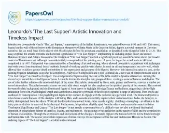 Leonardo's 'The Last Supper': Artistic Innovation and Timeless Impact. (2021, Apr 02). Retrieved from https://hub.papersowl.com/examples/the-last-supper-italian-renaissance-period/