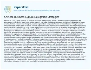 Chinese Business Culture Navigation Strategies. (2022, Apr 09). Retrieved from https://hub.papersowl.com/examples/the-leadership-and-initiative/