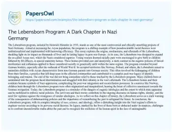 The Lebensborn Program: A Dark Chapter in Nazi Germany. (2024, Apr 01). Retrieved from https://hub.papersowl.com/examples/the-lebensborn-program-a-dark-chapter-in-nazi-germany/