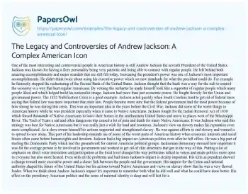 The Legacy and Controversies of Andrew Jackson: A Complex American Icon. (2024, Jul 06). Retrieved from https://hub.papersowl.com/examples/the-legacy-and-controversies-of-andrew-jackson-a-complex-american-icon/