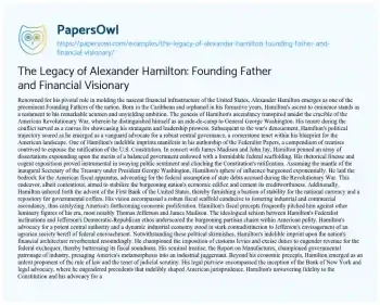The Legacy of Alexander Hamilton: Founding Father and Financial Visionary. (2024, Jun 17). Retrieved from https://hub.papersowl.com/examples/the-legacy-of-alexander-hamilton-founding-father-and-financial-visionary/