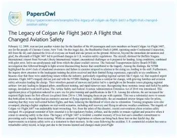 The Legacy of Colgan Air Flight 3407: A Flight that Changed Aviation Safety. (2023, Oct 16). Retrieved from https://hub.papersowl.com/examples/the-legacy-of-colgan-air-flight-3407-a-flight-that-changed-aviation-safety/