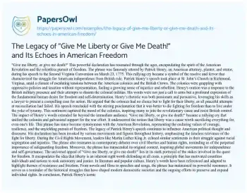The Legacy of "Give Me Liberty or Give Me Death!" and Its Echoes in American Freedom. (2024, Jun 28). Retrieved from https://hub.papersowl.com/examples/the-legacy-of-give-me-liberty-or-give-me-death-and-its-echoes-in-american-freedom/