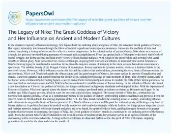 The Legacy of Nike: The Greek Goddess of Victory and Her Influence on Ancient and Modern Cultures. (2024, May 28). Retrieved from https://hub.papersowl.com/examples/the-legacy-of-nike-the-greek-goddess-of-victory-and-her-influence-on-ancient-and-modern-cultures/