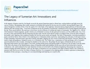 The Legacy of Sumerian Art: Innovations and Influences. (2024, Apr 07). Retrieved from https://hub.papersowl.com/examples/the-legacy-of-sumerian-art-innovations-and-influences/