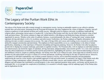 The Legacy of the Puritan Work Ethic in Contemporary Society. (2024, Apr 22). Retrieved from https://hub.papersowl.com/examples/the-legacy-of-the-puritan-work-ethic-in-contemporary-society/