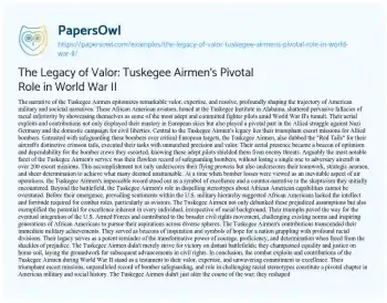 The Legacy of Valor: Tuskegee Airmen's Pivotal Role in World War II. (2024, Mar 02). Retrieved from https://hub.papersowl.com/examples/the-legacy-of-valor-tuskegee-airmens-pivotal-role-in-world-war-ii/