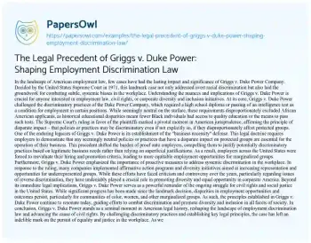 The Legal Precedent of Griggs v. Duke Power: Shaping Employment Discrimination Law. (2024, Jun 17). Retrieved from https://hub.papersowl.com/examples/the-legal-precedent-of-griggs-v-duke-power-shaping-employment-discrimination-law/