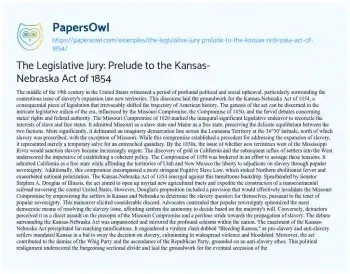 The Legislative Jury: Prelude to the Kansas-Nebraska Act of 1854. (2024, Mar 12). Retrieved from https://hub.papersowl.com/examples/the-legislative-jury-prelude-to-the-kansas-nebraska-act-of-1854/