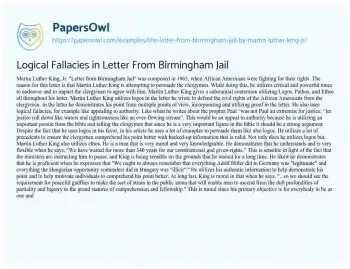 Logical Fallacies in Letter From Birmingham Jail. (2019, Apr 08). Retrieved from https://hub.papersowl.com/examples/the-letter-from-birmingham-jail-by-martin-luther-king-jr/