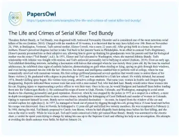 The Life and Crimes of Serial Killer Ted Bundy. (2022, Nov 14). Retrieved from https://hub.papersowl.com/examples/the-life-and-crimes-of-serial-killer-ted-bundy/