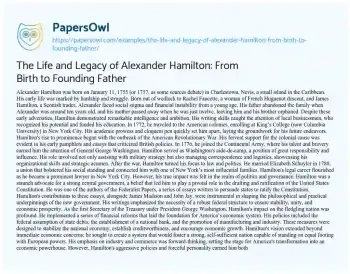 The Life and Legacy of Alexander Hamilton: From Birth to Founding Father. (2024, Jun 17). Retrieved from https://hub.papersowl.com/examples/the-life-and-legacy-of-alexander-hamilton-from-birth-to-founding-father/