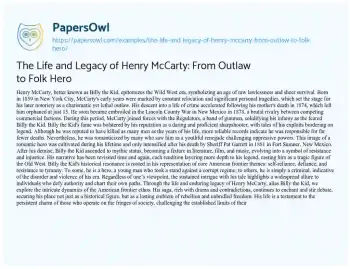 The Life and Legacy of Henry McCarty: From Outlaw to Folk Hero. (2024, May 12). Retrieved from https://hub.papersowl.com/examples/the-life-and-legacy-of-henry-mccarty-from-outlaw-to-folk-hero/