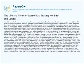 The Life and Times of Joan of Arc: Tracing Her Birth and Legacy. (2024, Jul 21). Retrieved from https://hub.papersowl.com/examples/the-life-and-times-of-joan-of-arc-tracing-her-birth-and-legacy/