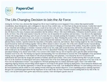 The Life-Changing Decision to Join the Air Force. (2025, Oct 31). Retrieved from https://hub.papersowl.com/examples/the-life-changing-decision-to-join-the-air-force/