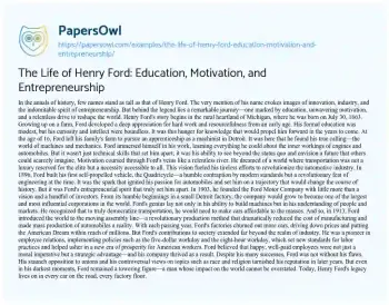 The Life of Henry Ford: Education, Motivation, and Entrepreneurship. (2024, Apr 29). Retrieved from https://hub.papersowl.com/examples/the-life-of-henry-ford-education-motivation-and-entrepreneurship/