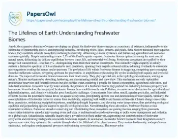 The Lifelines of Earth: Understanding Freshwater Biomes. (2024, Apr 01). Retrieved from https://hub.papersowl.com/examples/the-lifelines-of-earth-understanding-freshwater-biomes/