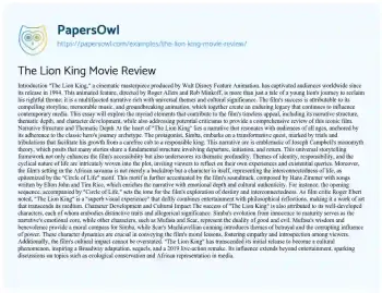 The Lion King Movie Review. (2024, Dec 27). Retrieved from https://hub.papersowl.com/examples/the-lion-king-movie-review/