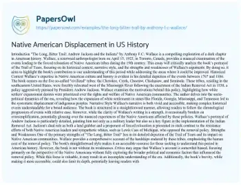 Native American Displacement in US History. (2021, Mar 13). Retrieved from https://hub.papersowl.com/examples/the-long-bitter-trail-by-anthony-f-c-wallace/