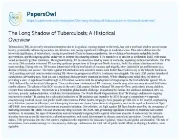 The Long Shadow of Tuberculosis: A Historical Overview. (2024, Mar 02). Retrieved from https://hub.papersowl.com/examples/the-long-shadow-of-tuberculosis-a-historical-overview/