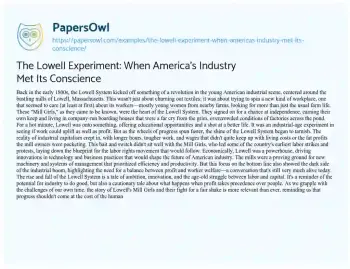 The Lowell Experiment: When America's Industry Met Its Conscience. (2024, Feb 20). Retrieved from https://hub.papersowl.com/examples/the-lowell-experiment-when-americas-industry-met-its-conscience/