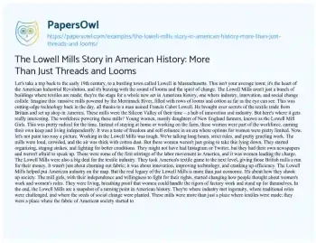 The Lowell Mills Story in American History: More Than Just Threads and Looms. (2023, Dec 01). Retrieved from https://hub.papersowl.com/examples/the-lowell-mills-story-in-american-history-more-than-just-threads-and-looms/