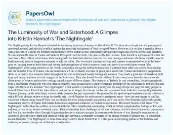 The Luminosity of War and Sisterhood: A Glimpse into Kristin Hannah's 'The Nightingale'. (2023, Oct 26). Retrieved from https://hub.papersowl.com/examples/the-luminosity-of-war-and-sisterhood-a-glimpse-into-kristin-hannahs-the-nightingale/