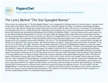 The Lyrics Behind "The Star-Spangled Banner". (2024, Jul 21). Retrieved from https://hub.papersowl.com/examples/the-lyrics-behind-the-star-spangled-banner/