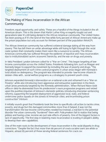 The Making of Mass Incarceration In the African Commmunity. (2019, Jun 18). Retrieved from https://hub.papersowl.com/examples/the-making-of-mass-incarceration-in-the-african-commmunity/