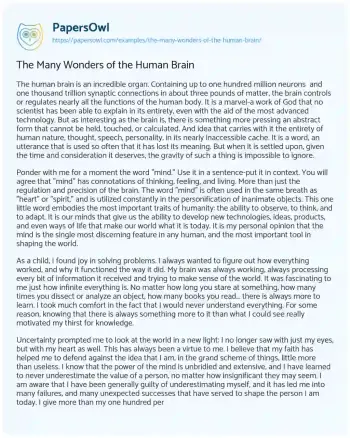 The Many Wonders of the Human Brain. (2022, Nov 18). Retrieved from https://hub.papersowl.com/examples/the-many-wonders-of-the-human-brain/