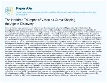 The Maritime Triumphs of Vasco da Gama: Shaping the Age of Discovery. (2024, May 21). Retrieved from https://hub.papersowl.com/examples/the-maritime-triumphs-of-vasco-da-gama-shaping-the-age-of-discovery/